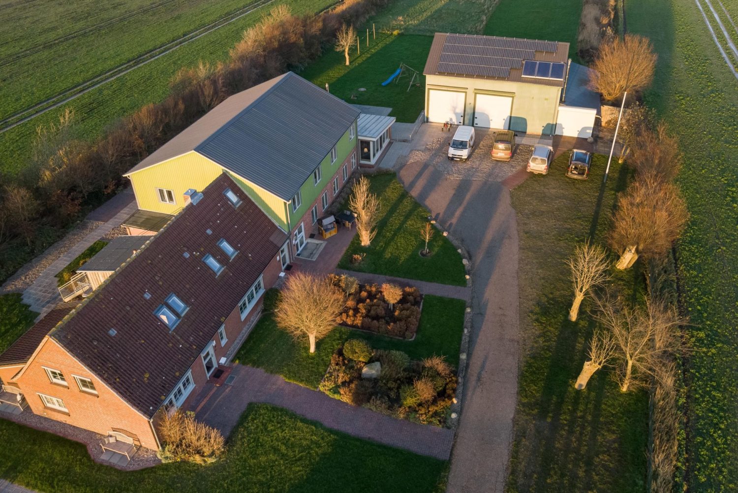 Unser Hof liegt im Westen von Nordstrand, direkt hinter dem immergrünen Nordseedeich.