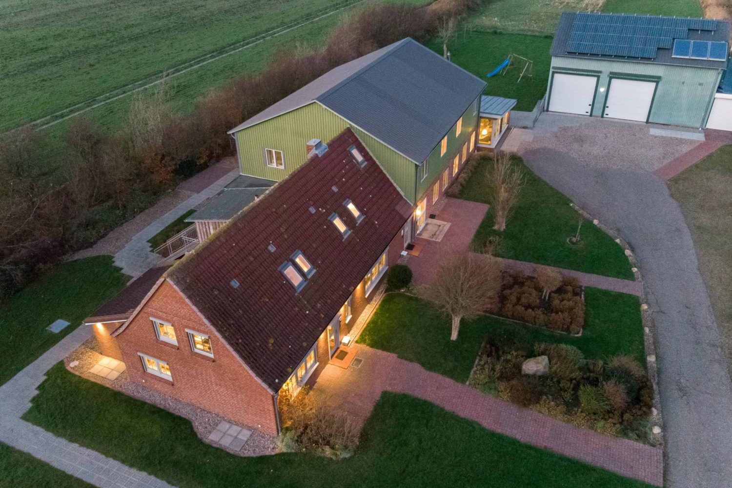 Auf unserem Hof können sich die Kinder mit Trettreckern, Kettcars, Bobbycars und Laufrädern so richtig austoben und die Erwachsenen machen es sich derweil im großen Garten gemütlich. Desweiteren befinden sich auf dem Hofgelände ein Klettergerüst, Schaukeln und eine Menge Platz zum Spielen. In unserer Spielscheune kann auch bei schlechtem Wetter in der Indoorsandkiste gebuddelt und gebaut werden, während die Eltern es sich bei einem Klönschnack in Strandkörben und gemütlichen Sitzecken bequem machen können.